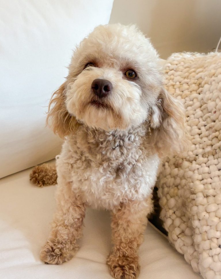 Cocoa is an 85% Miniature Poodle with small traces of Chocolate Retriever and Bichon, according to her DNA test.
